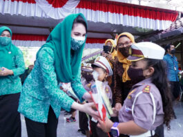 SIDOARJO, arekMEMO.Com – Ketua Dekranasda Jawa Timur sekaligus Ketua TP PKK Jatim Arumi Bachsin Emil Dardak menghadiri pelantikan Pengurus Dewan Kerajinan Nasional Daerah (Dekranasda) Sidoarjo masa bakti 2021-2024, di Pendopo Kabupaten Sidoarjo, Kamis (18/11/2021).